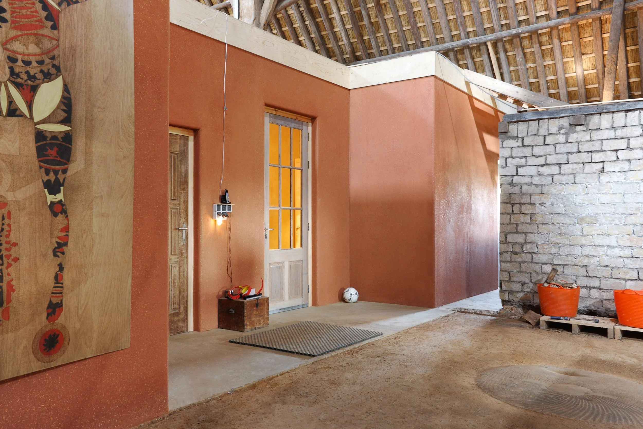 Mud building: the 300-year-old farmhouse has been given a new interior with Tierrafino plaster. White clay plaster is very popular in Holland and has already been used in tens of thousands of projects. Nowadays, people love white plaster, especially when it is eggshell white.