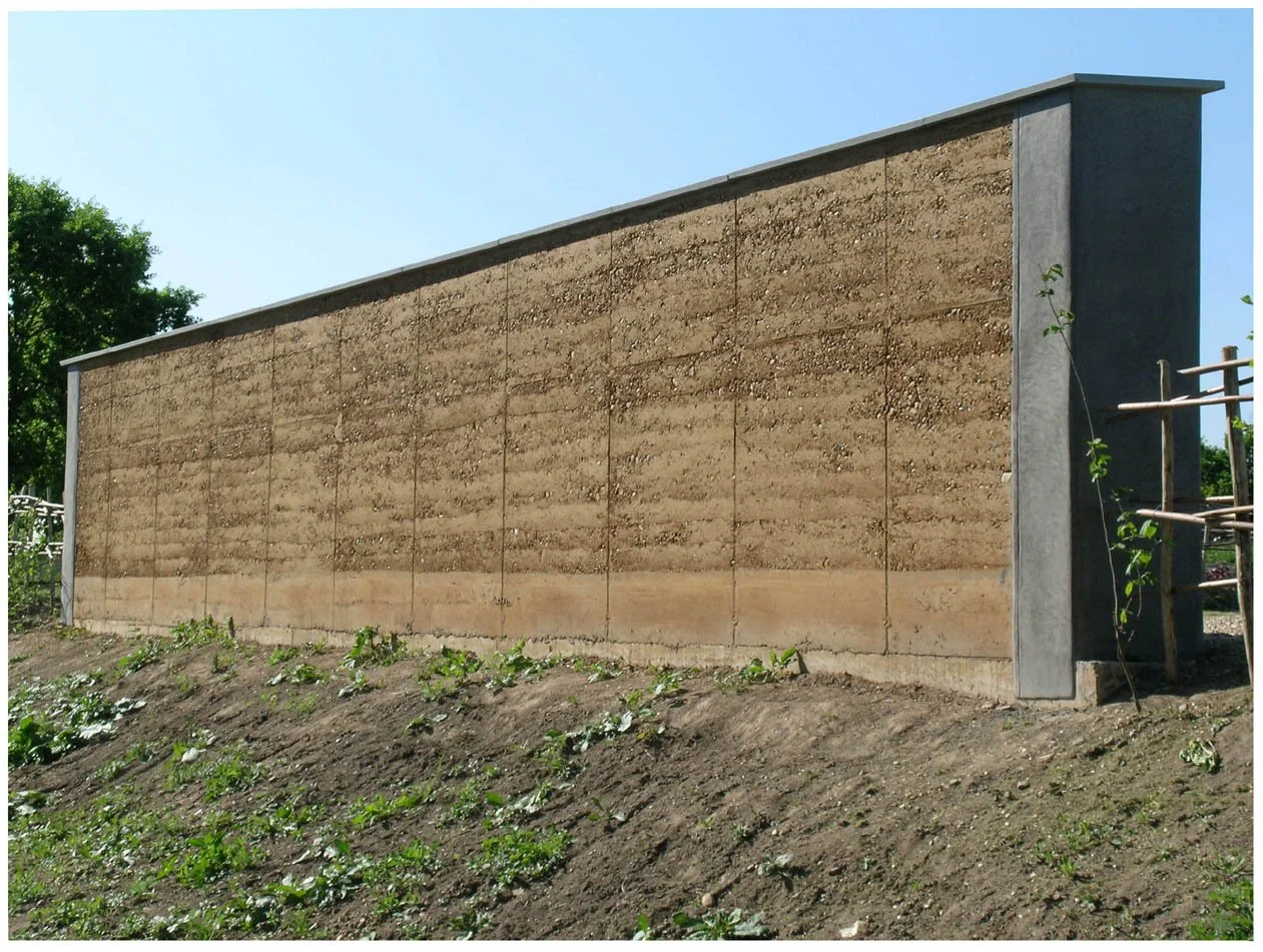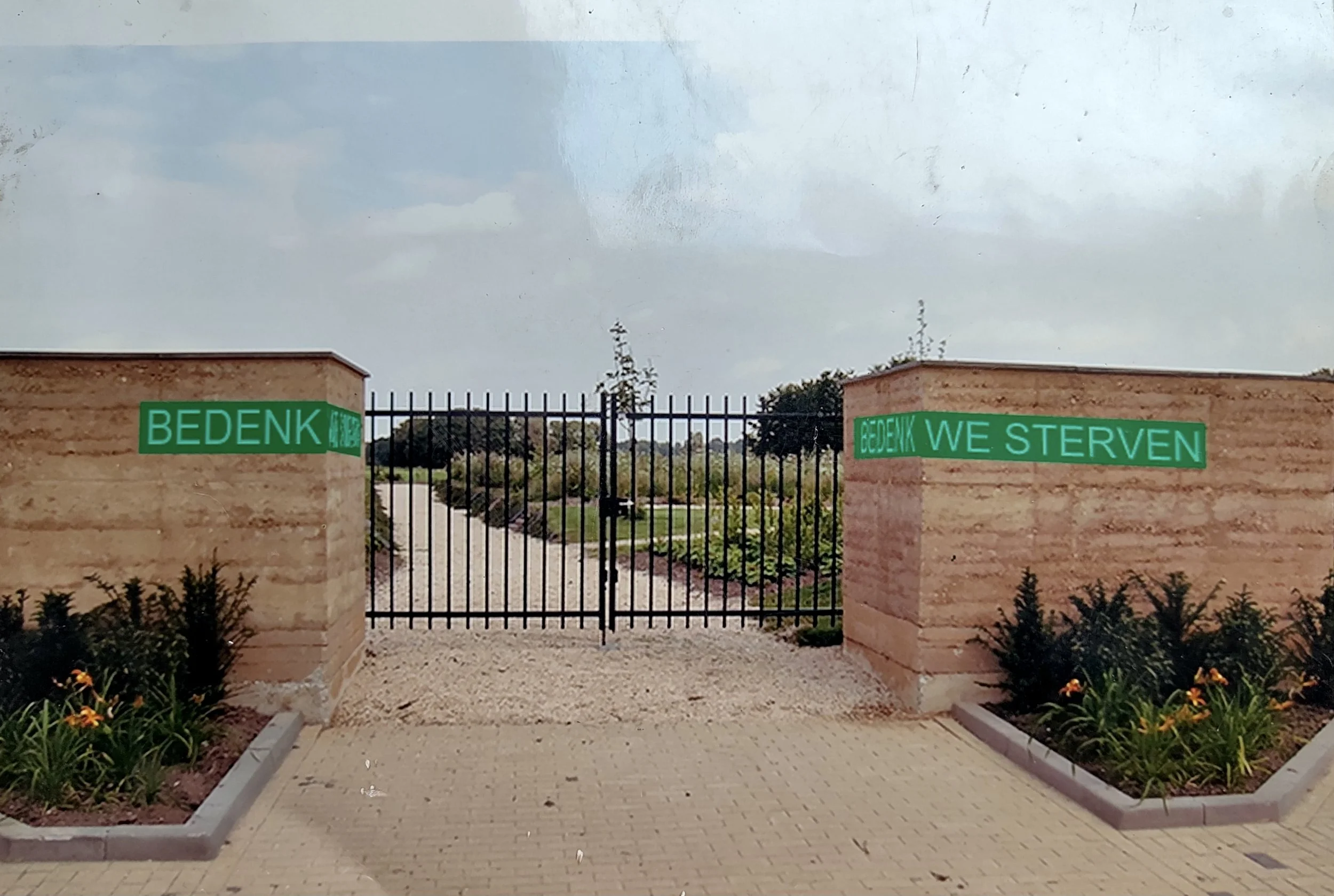 Rammed earth in a cemetery in the Netherlands, where we were commissioned by the world-renowned artist Louwrien Wijers to construct an urn wall, a wall at the ash scattering field and the entrance walls to the cemetery using our rammed earth techniques.