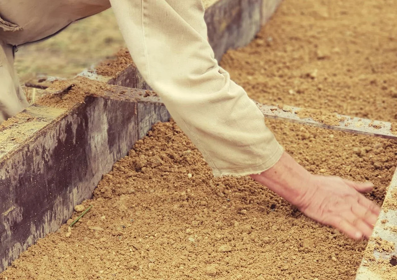 Rammed earth in the main entrance of Coevorden Town Hall, Netherlands. The city administration had investigated the topic of rammed earth and realised that such a thick wall has a great capacity to absorb a lot of humidity and, if necessary, release it again by itself. For the most part, the giant wall brings a huge piece of nature into the building.