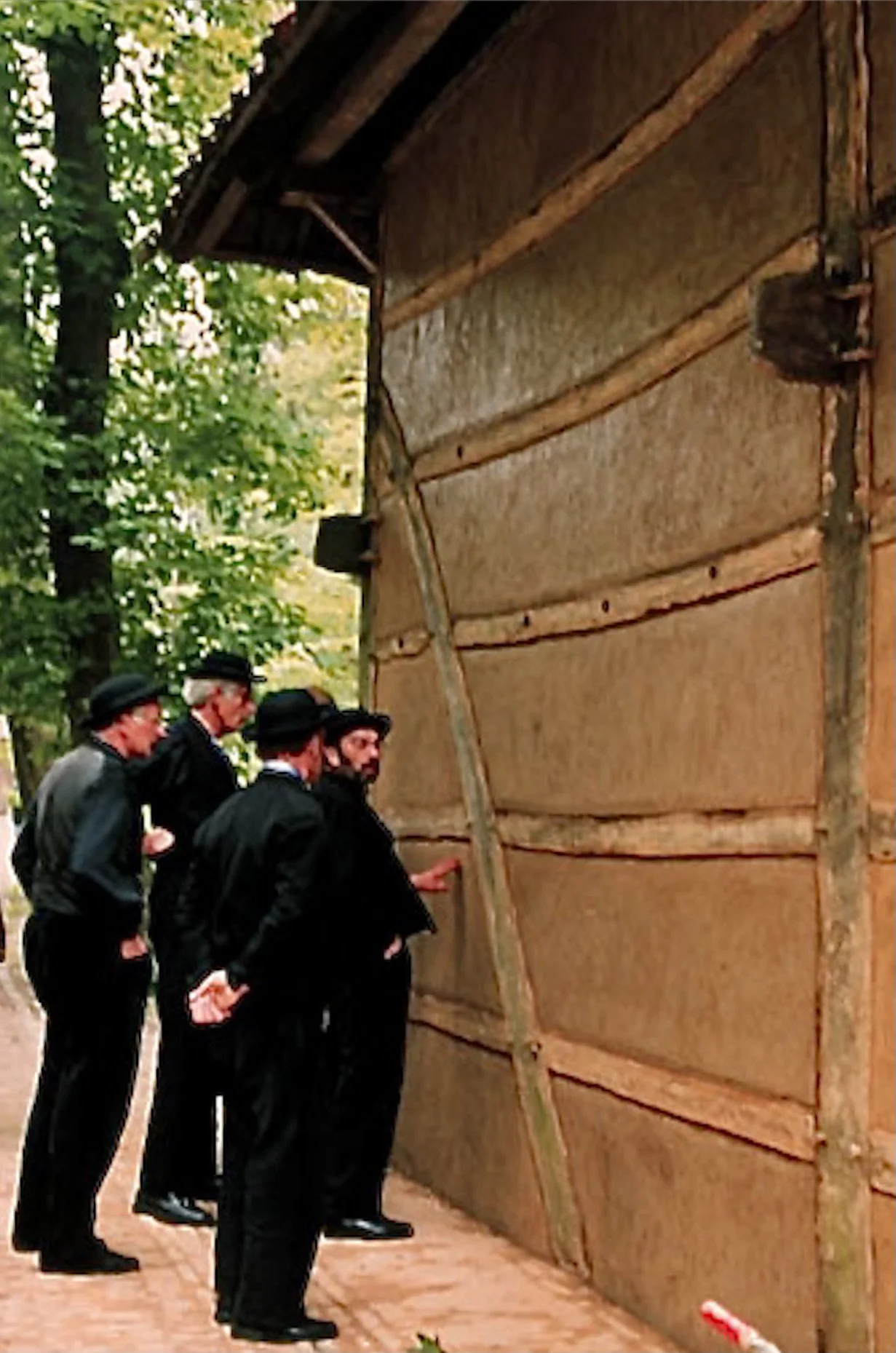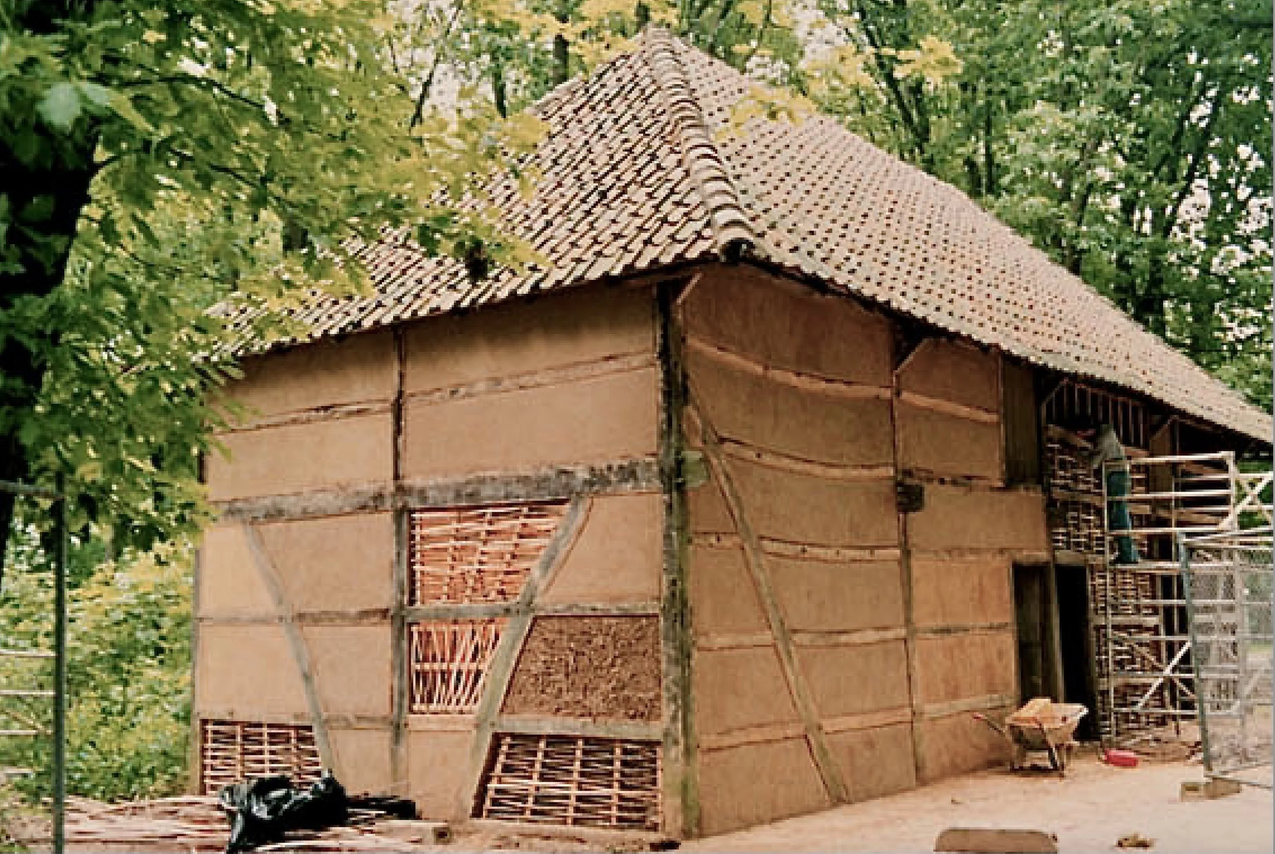 Wattle and daub is constructed with oak beams, the vertical stakes are also oak, the horizontal wattle is made of three-year-old split willow rods, the mortar mixture consists of clay, lime, straw and horse urine. This mixture provides good weather protection. With thanks to Andre Schopman, Virginia Velasco, the helpers and the management of the open-air museum.